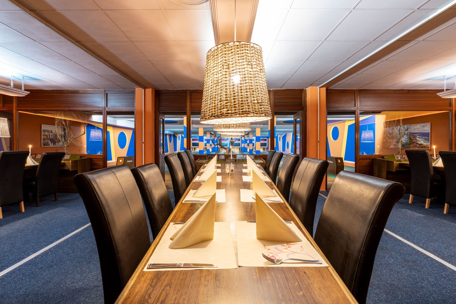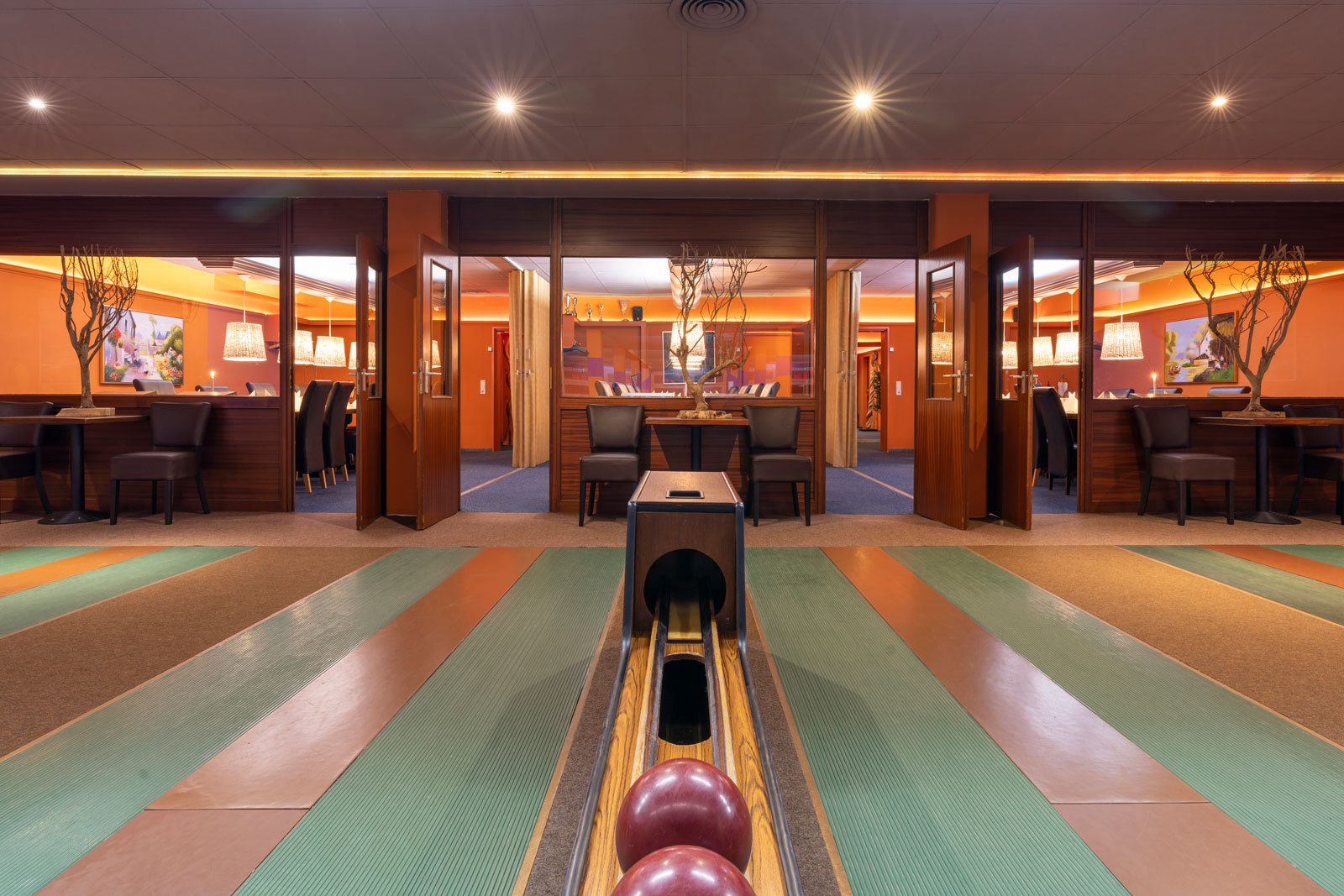 Hier kann bei entspannter Atmosphäre gekegelt, gegessen und gefeiert werden. Auf unseren Doppel-Kegelbahnen bieten wir Ihnen Platz für 50 Personen für Ihre Weihnachtsfeiern, Firmenfeiern und Events jeglicher Art. Für 35 € pro Stunde haben Sie eine Doppelbahn für sich und Ihre Gäste.